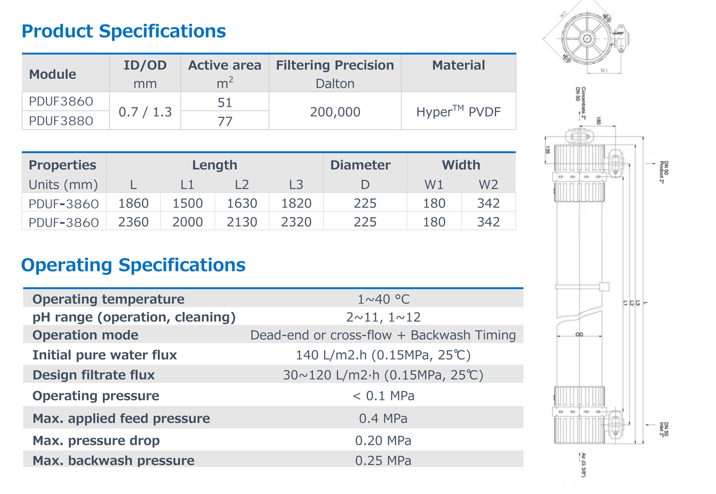 PDMF/UF Series Capillary Membrane Module
