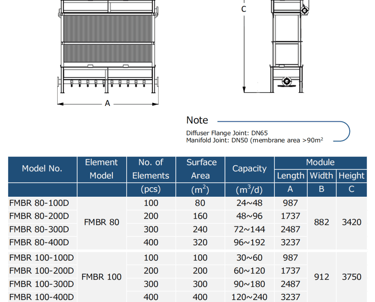 The Memtik FMBR series product was designed to quickly, and significantly, increase the filtration capacity of existing plants using flat-plate technology. It is compatible with several Toray® and Kubota® products. The Memtik FMBR modules can be installed in a single-deck configuration or stacked. Equipment dimensions and operating parameters are like, and in some cases, the same as, older style plate cassettes/modules but with a packing density that is 31% to 190% higher. Simple changeouts can be done in hours having minimal impact on plant operations but having a big impact on capacity. The Memtik FMBR series product are developed together with China based membrane manufacturer with 20+ years manufacturing experience coupled with Memtik professional technical support engineer to provide high value product and solutions.